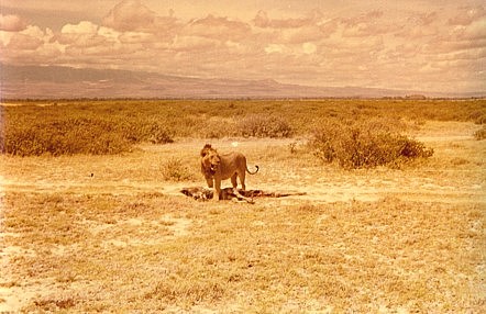 KENIA 1971_im 'Amboseli Nationalpark'_Löwe mit gerade gerissenem Gnu_Jochen A. Hübener