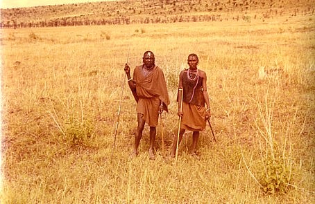 TANSANIA 1971_2 Massai-Krieger nahe der Grenze zu Kenia_ den Massai-Speer des linken Kriegers habe ich noch heute (2008)_Jochen A. Hübener