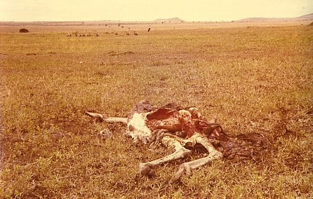 TANSANIA 1971_ein verendeter Strauss nahe der Grenze zu Kenia_ im Hintergrund die von Jochen verscheuchten, wartenden Geier_Jochen A. Hübener