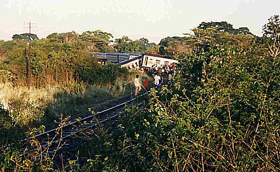 spring 1988_UGANDA, civil war: GUERRILLAS blasted this train, killed many of the armed staff