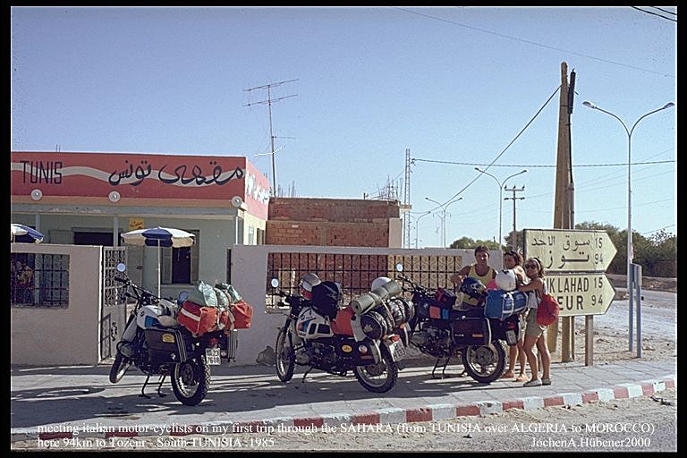 1985_TUNISIA_Gabes, Café_94 km to Tozeur_meeting Italian BMW motorcyclists ... some nice and funny days together ... _Jochen A. Hübener