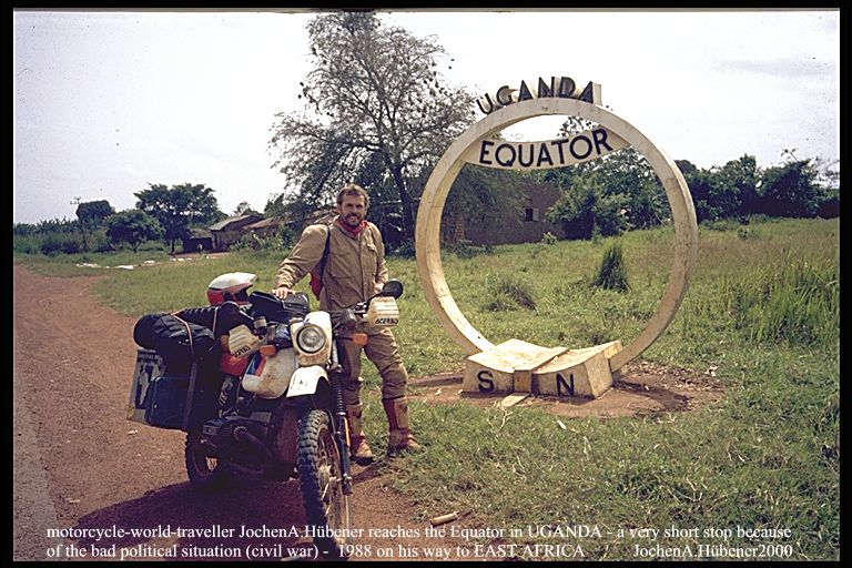 UGANDA 1988_Jochen, reaching the EQUATOR by motorcycle_very bad and dangerous political situation_