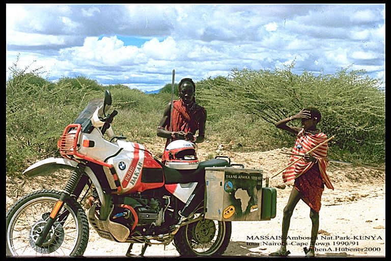 KENYA_native Massais in Amboseli National Park meet BMW motorcycle_2 different