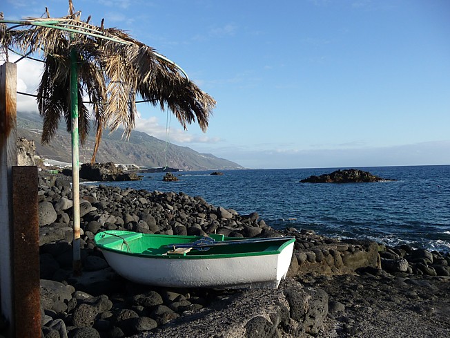 Fischerboot im Örtchen 'Bombilla', im Hintergrund