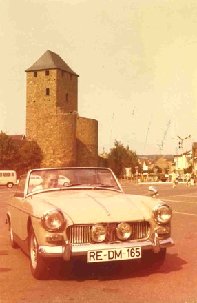 - Angelika in Jochens MG auf dem Weg zum 'FORMEL-1-Rennen' auf