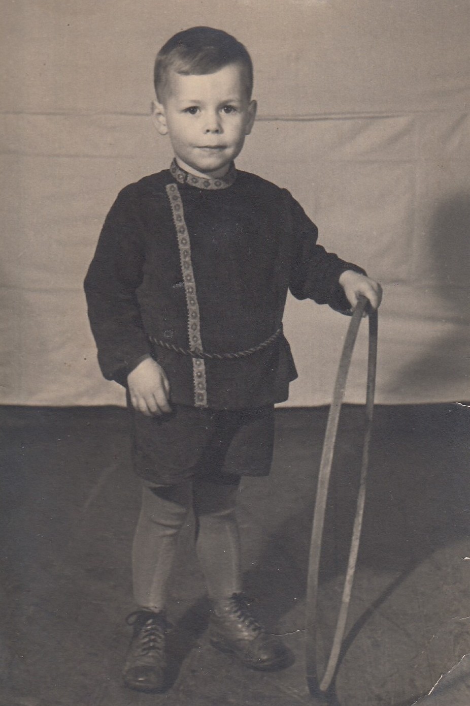 Jochen in Kosakenkluft und Spielreifen, in Böhlen (bei Leipzig, DDR)