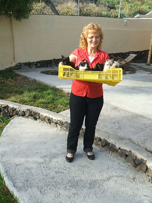 Conchita mit den 5 jungen Kätzchen 'Negrita', 'Menos-blanca', 'Negrito',