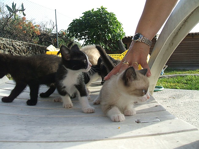 ... die 5 jungen Kätzchen 'Menos-blanca' und 'Tranquilita' (im Vordergrund)