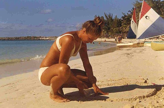 BAHAMAS_NASSAU, paradise-island-beach 1973_Angelika im Sand buddelnd_ Jochen A. Hübener