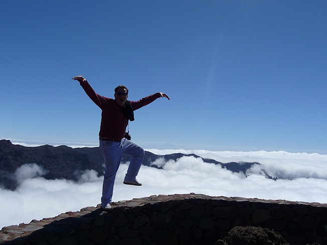 Jochen versucht zu fliegen ... am Grad des 'Roque de los