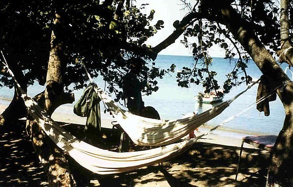 Isla Margarita, VENEZUELA 1984_unsere Hängematten direkt am Strand, tagsüber und nachts_Jochen A. Hübener