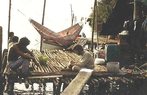 Jochen schreibt Tagebuch_bei den Fischern an der ORINOCO-Mündung_VENEZUELA 1984_Jochen A. Hübener