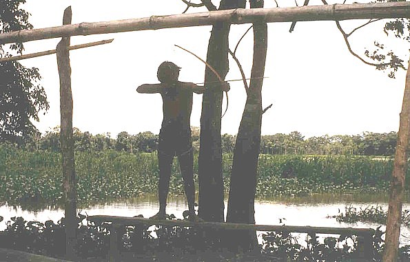 bewaffnete Indio-Junge stand plötzlich wie ein Geist regungslos am Ufer_zum Glück wies sein Bogen