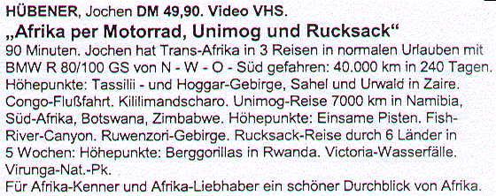 VIDEO Beschreibung_AFRIKA per Motorrad, Unimog und Rucksack_Jochen A. Hübener