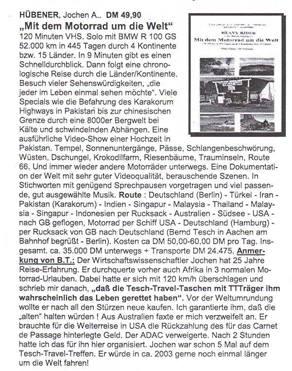 Video_Weltumrundung per Motorrad_Jochen A. Hübener_Beschreibung_Tesch