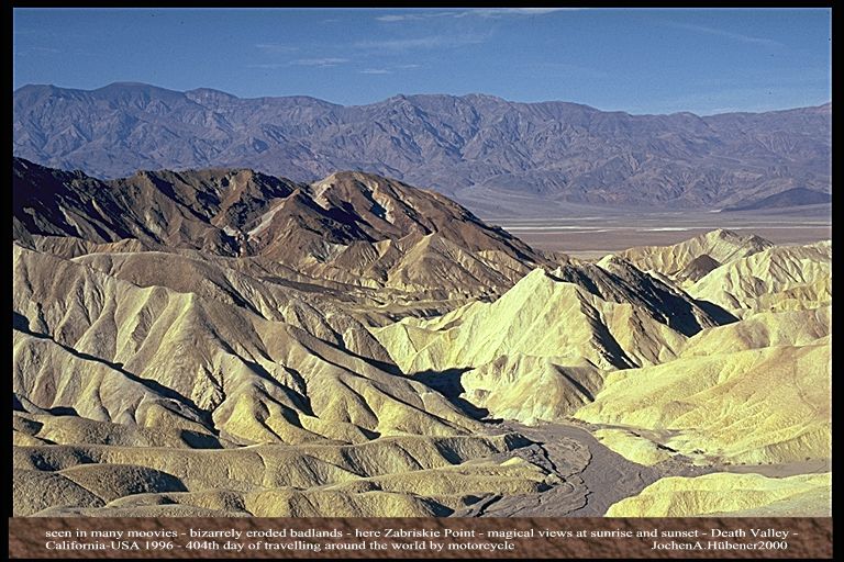 1996_USA_Death Valley_Zabriskie Point, magical views at sunrise und sunset_bizarrely eroded badlands_ seen in many movies_my motorcycle-trip around the world 1995-96_Jochen A. Hübener